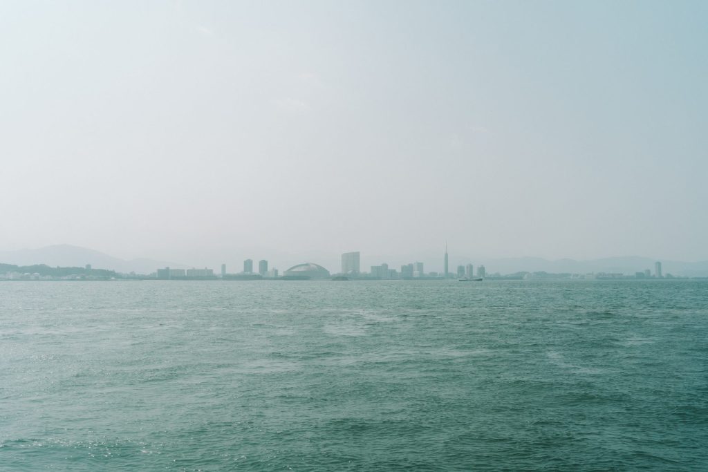 海上から望む福岡の景色はこういうときでしか見ることができない。ある意味貴重な景色だ。