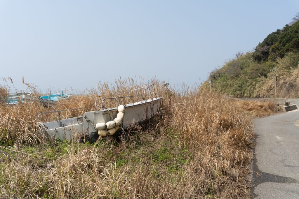 小型のボートがところどころに。打ち捨てられているのだろうか。